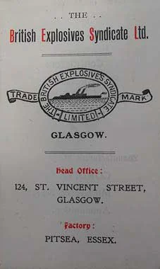 Nobel desperately wanted to sell to the huge markets of the British Empire but regulations kept him out of manufacturing in Britain. Through a loophole in the law he built a factory in Scotland. Then in 1891 the British Explosives Syndicate built a factory in Pitsea. Nobel was a secret partner to begin with but eventually was able to trade under his own name.